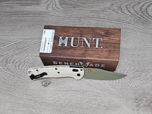 B-USA 15536GN-01 TAG*ED OUT TAN W/ GREEN BLADE KNIFE. MADE on a BENCH in Oregon