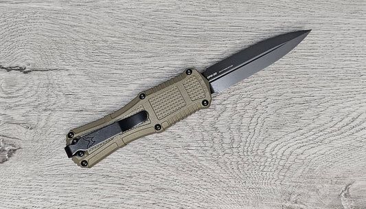B-USA 3370GY CLAYM*RE OTF KNIFE BLACK DAGGER. MADE on a BENCH in Oregon