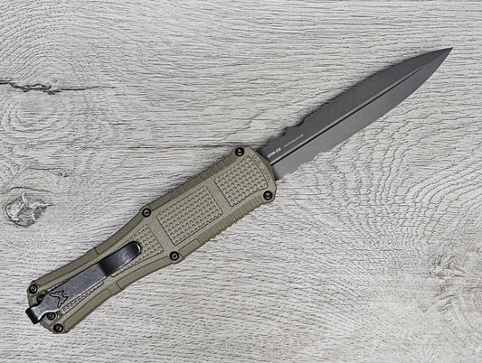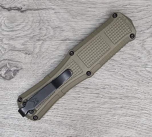 B-USA 3370SGY-1 CLAYM*RE OTF KNIFE RANGER GREEN. MADE on a BENCH in Oregon