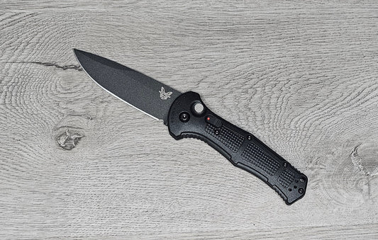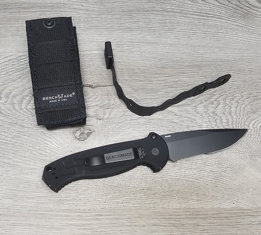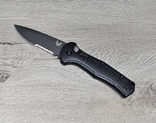 B-USA 9070SBK CLAYM*RE AUTO OPENING (NON 0TF) BLACK SERRATED KNIFE . MADE on a BENCH in Oregon
