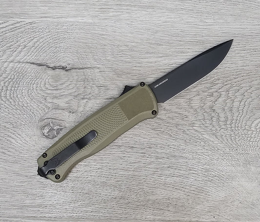 B-USA 9070BK-1 CLAYM*RE AUTO OPENING (NON 0TF) RANGER GREEN KNIFE . MADE on a BENCH in Oregon