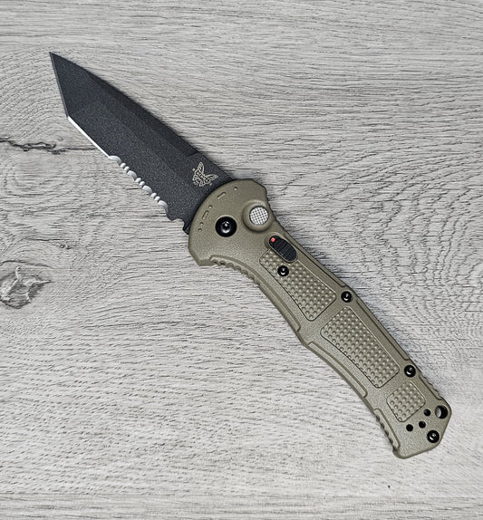 B-USA 9070SBK-1 CLAYM*RE AUTO OPENING (NON 0TF) RANGER GREEN SERRATED KNIFE . MADE on a BENCH in Oregon