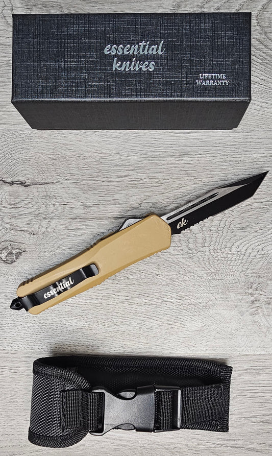 ESSENTIAL KNIVES "THE ESSENTIAL 9" COYOTE Out The Front Knife Tanto Blade