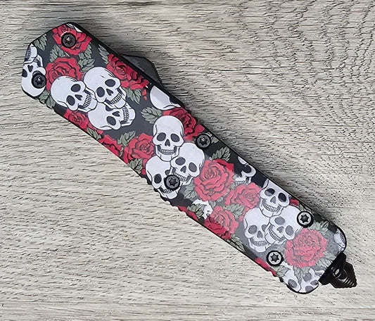 ESSENTIAL KNIVES "THE ESSENTIAL 9" SKULLS N ROSES Out The Front Knife DROP POINT BLADE
