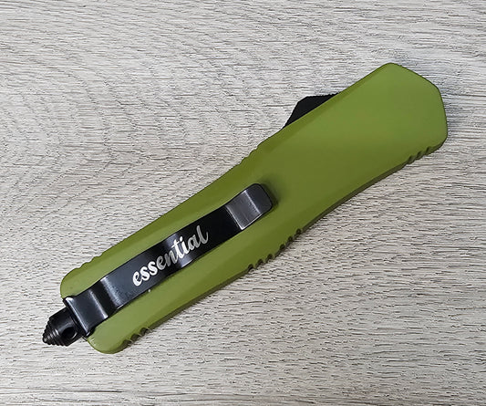 ESSENTIAL KNIVES "THE ESSENTIAL 9" OD GREEN Out The Front Knife TANTO SERRATED Blade