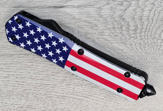 ESSENTIAL KNIVES "THE ESSENTIAL 9" STARS & STRIPES Out The Front Knife DROP POINT Blade