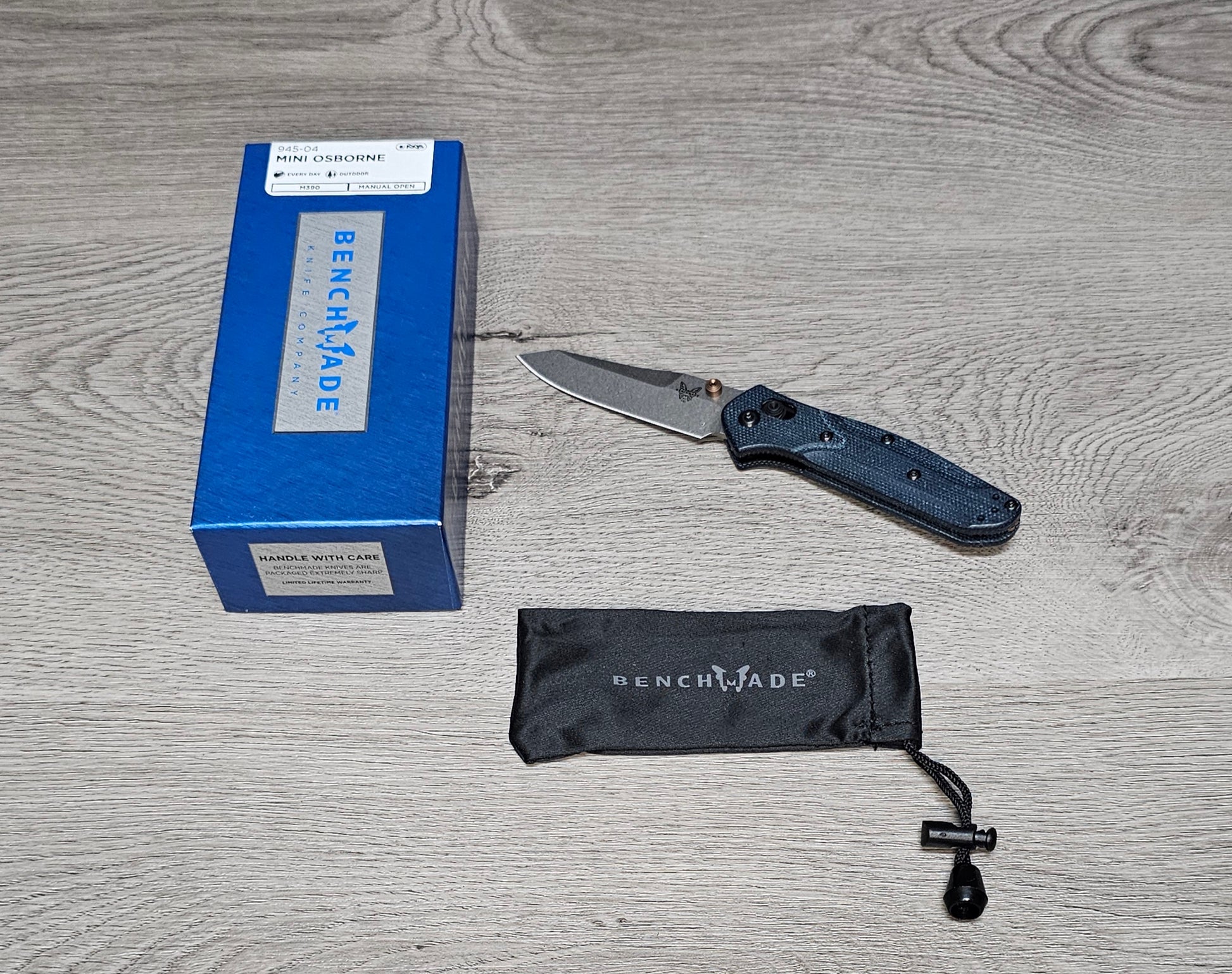 B-USA 945-04 MINI OSBO*RNE BLUE DENIM MICARTA MADE on a BENCH in Oregon