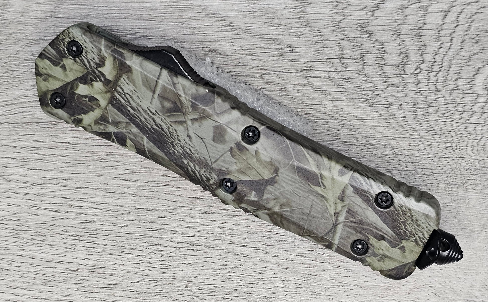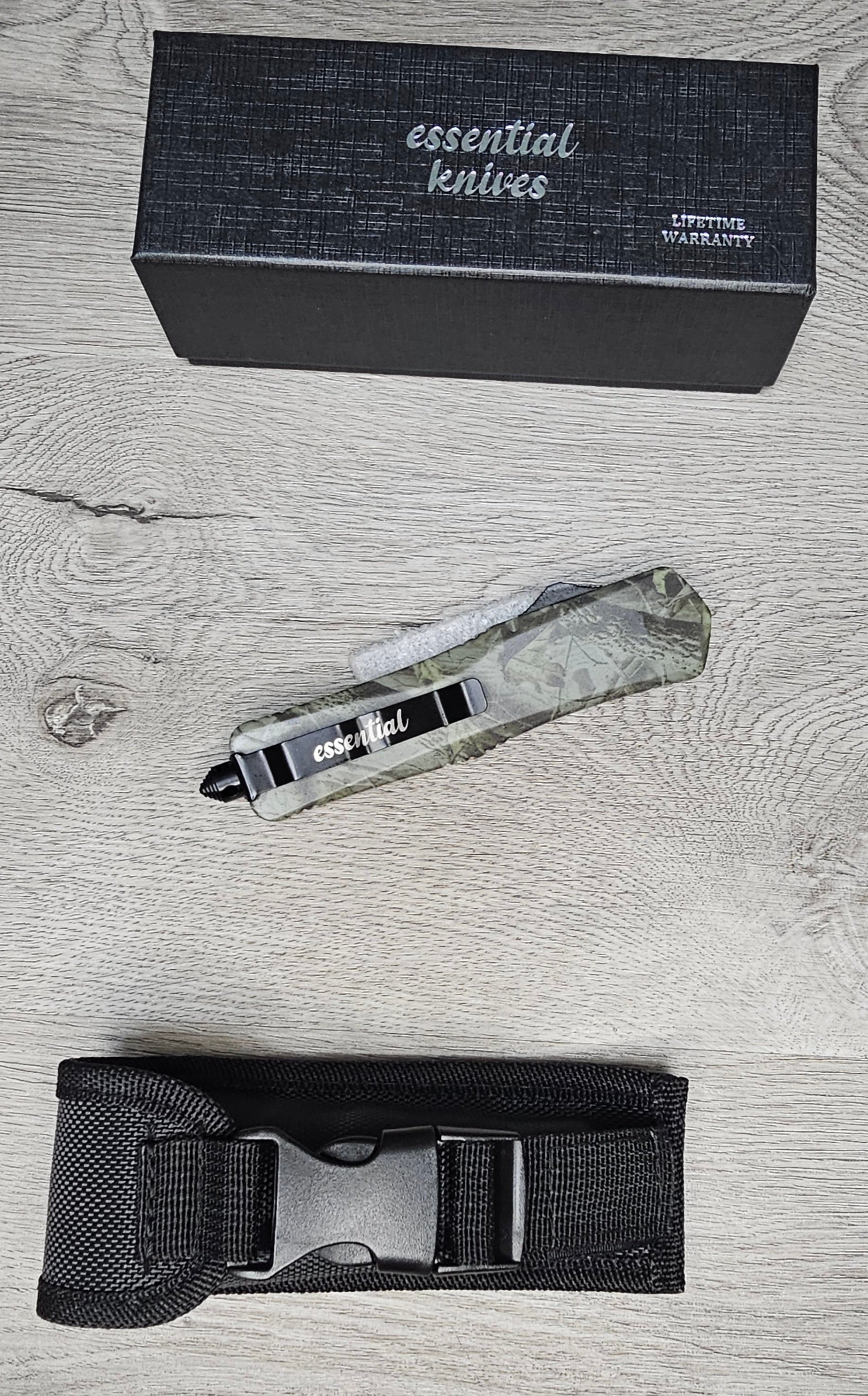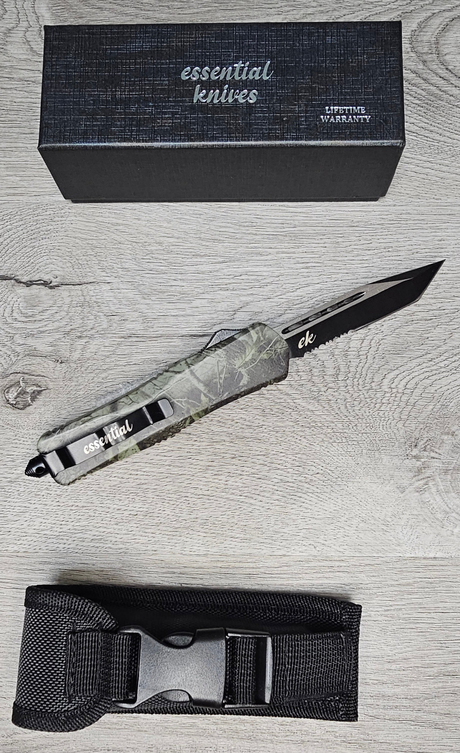 ESSENTIAL KNIVES "THE ESSENTIAL 9"CAMO Out The Front Knife TANTO SERRATED Blade